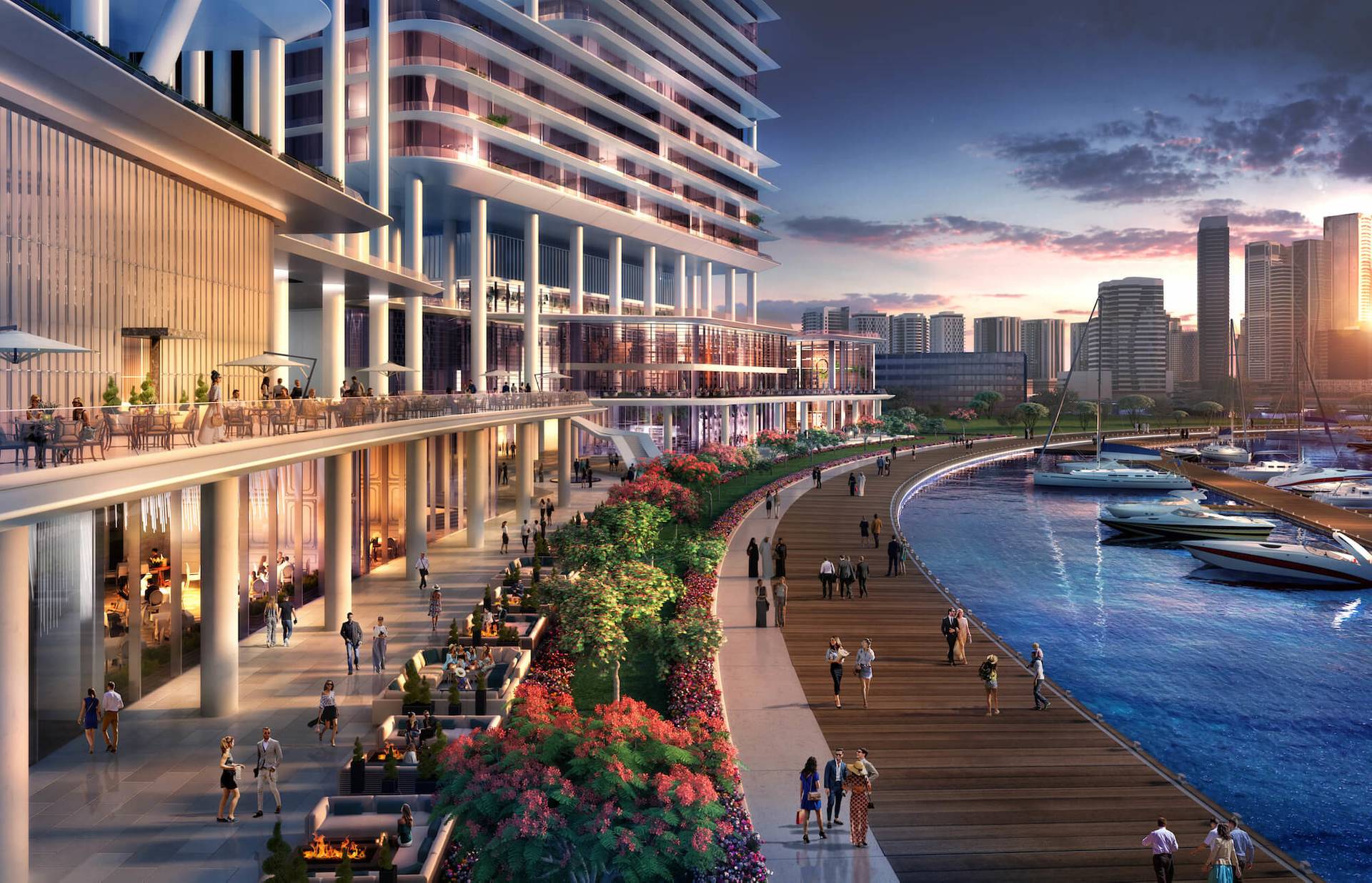 Элитный 23-этажный жилой комплекс на первой линии моря. Управление – Dorchester Collection. 94 резиденции (просторные апартаменты) с панорамными видами на город и Персидский залив. Стильные минималистичные интерьеры от Super Potato (Япония) и Elicyon (Англия). Инновационная архитектура от SOMA Architects (США).