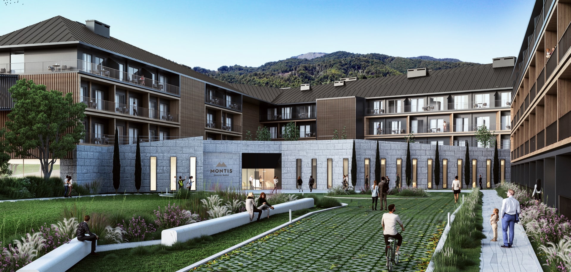 Montis Mountain Resort — это кондо-отель категории 5*, который включает 238 номеров (сьютов), несколько ресторанов, конференц-залы, кинотеатр, паб, спа, открытый и закрытый бассейны, детский клуб, лыжную комнату и гараж. Всего это 4 функциональные зоны и зона проживания. Все сьюты отеля Montis Mountain Resort будут меблированы по стандартам пятизвездочного отеля.